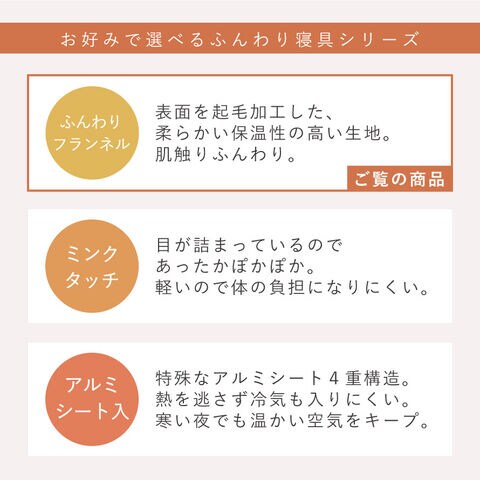 ふんわりとした肌触りのフランネル素材使用。肌あたり優しく頬擦りしたくなる触り心地です。