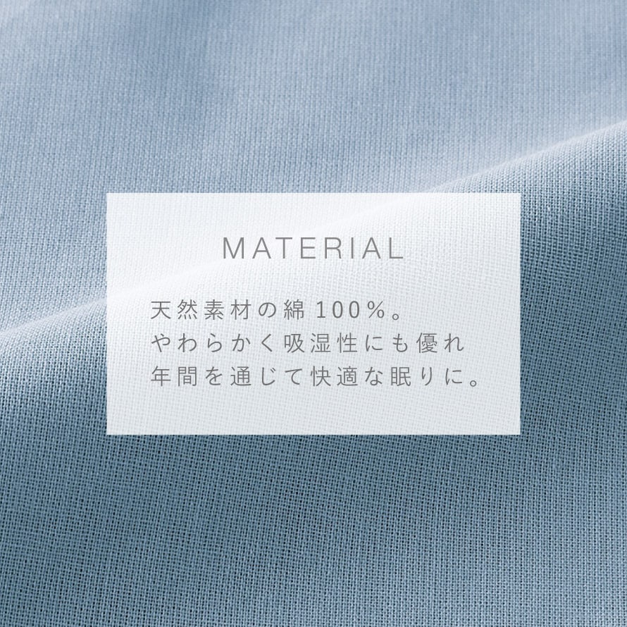 なめらかでやわらかい肌ざわりで、心地よい眠りに。吸湿性にも優れ年間を通じて快適にお使いいただけます。