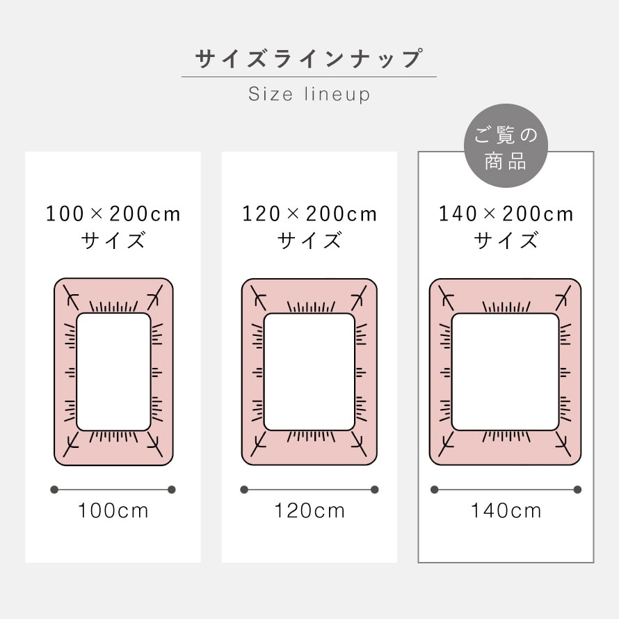 サイズ140×200cm、折り返し部分25cm