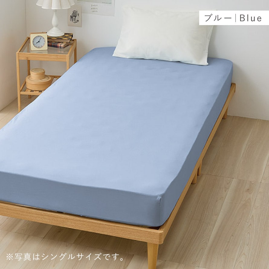 裏面に周囲ゴム仕様で、マットレスにしっかりフィットし、ズレにくい。引っ掛けるだけで装着でき、シーツ交換が手軽にできます。