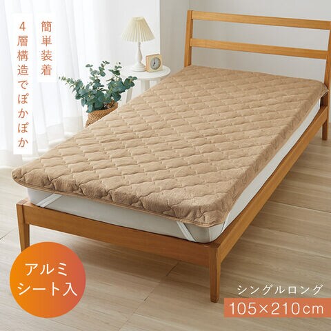 アルミシート入り あったか敷きパッド 敷き布団カバー シングルロング 105×210cm 冬用 あったか 4層構造 フランネル敷きパッド 洗える 暖かい キルト敷きパッド 軽い ズレにくい ゴム付き 保温 寝具