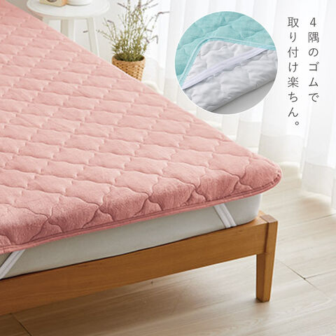 4隅にはゴムバンド付きで取り付けも簡単。敷き布団やマットレスにもフィットしてズレにくく、寝返りしても安心です。