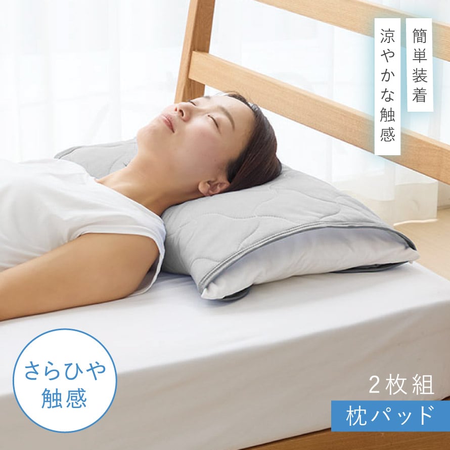 枕パッド 冷感 2枚組 枕カバー 夏 ひんやり 涼しい さらさら まくらカバー 枕 パッド 寝具 暑さ対策 さらひや触感まくらパッド 2枚組