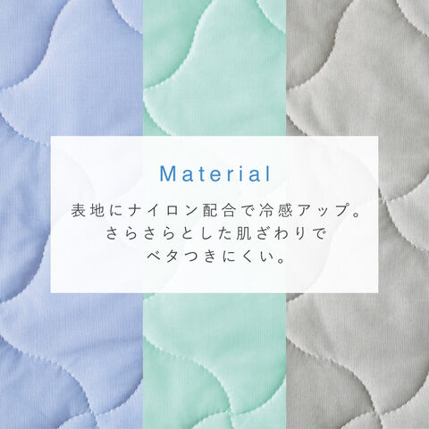 表地はナイロンの配合を高めることで、冷感性をアップ。汗ばむ季節の眠りを快適にサポートします。さらさらとした肌ざわりで、ベタつきにくいのも魅力です。