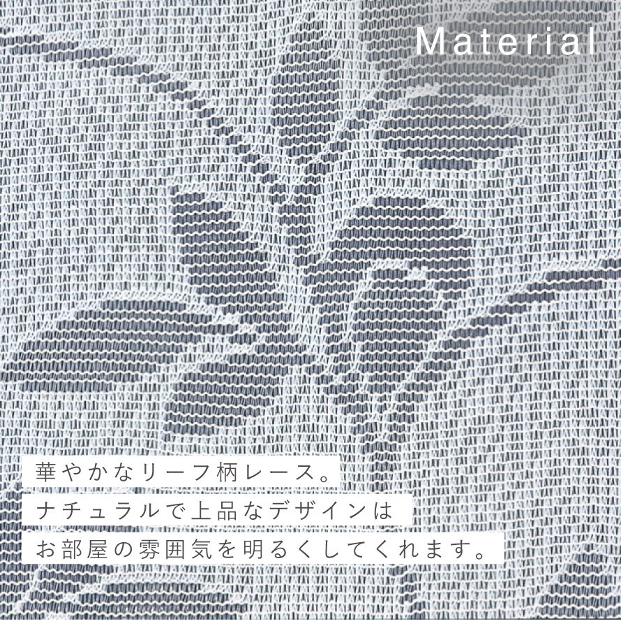華やかなリーフ柄レース。ナチュラルで上品なデザインはどんなお部屋のインテリアとの相性も◎。お部屋の雰囲気を明るくしてくれます。