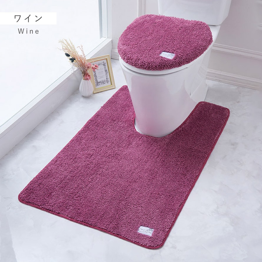 トイレマット フタカバー 洗浄暖房 2点セット 60×100cm 耳長ロング トイレ フタカバー 蓋 カバー すべらない 滑り止め 洗える シンプル 無地 ワイン グレー おしゃれ 耳長ロングトイレマット・フタカバーセット プレーン