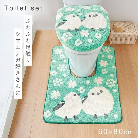 トイレマット フタカバーセット シマエナガ 可愛い おしゃれ お洒落 厚手 ふかふか インテリア トイレ フタカバー マット セット 洗える 滑り止め 洗浄暖房 蓋カバー 耳長トイレマット・フタカバーセット シマエナガ