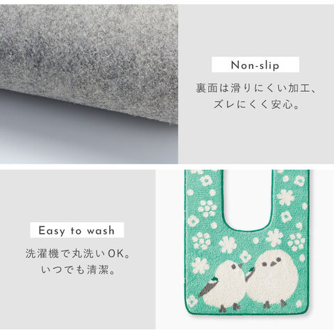 爽やかなミントグリーンにシマエナガが寄り添う可愛らしいデザインは、トイレを優しい空間に。散りばめた白いお花は北欧テイストで、どんなインテリアにも合わせやすくて◎。ちょこんと佇む2羽の微笑ましい様子に思わずほっこりしてしまうアイテムです。