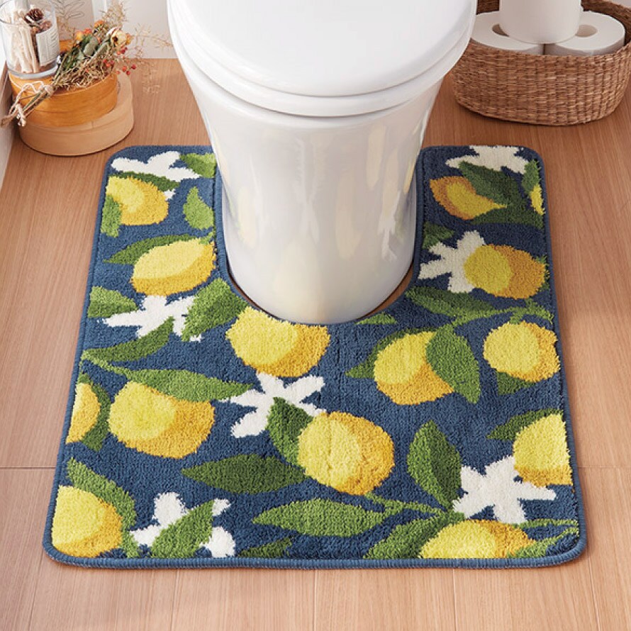 大人可愛いレモン柄デザイン。くすみトーンでナチュラルインテリアにもマッチするトイレマット&蓋カバー。
