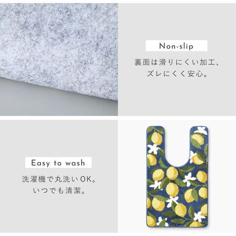 大人可愛いレモン柄デザイン。くすみトーンでナチュラルインテリアにもマッチするトイレマット&蓋カバー。