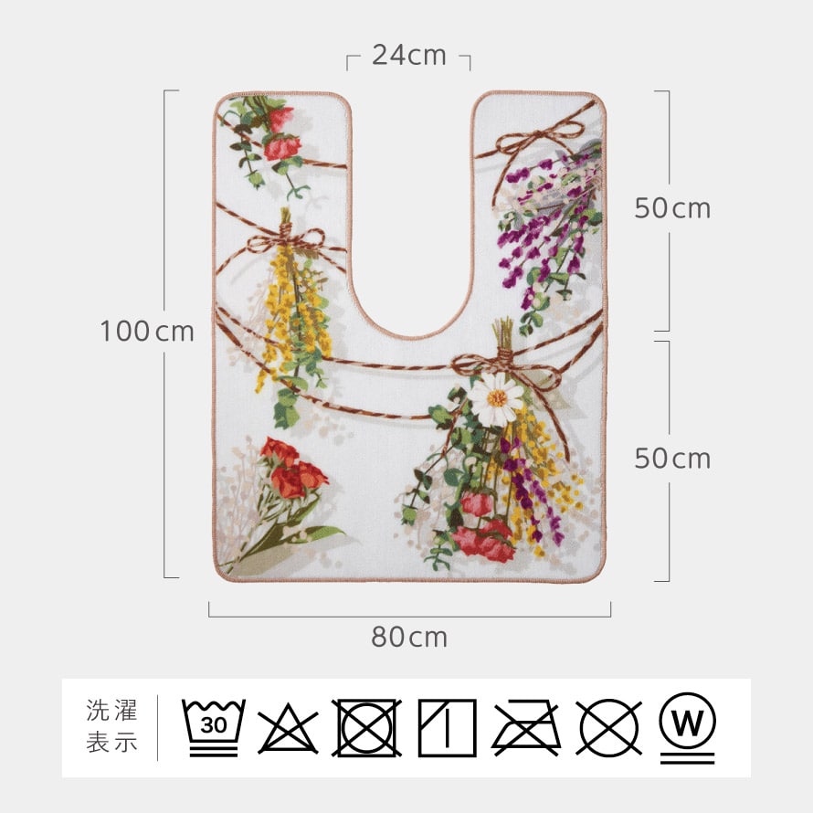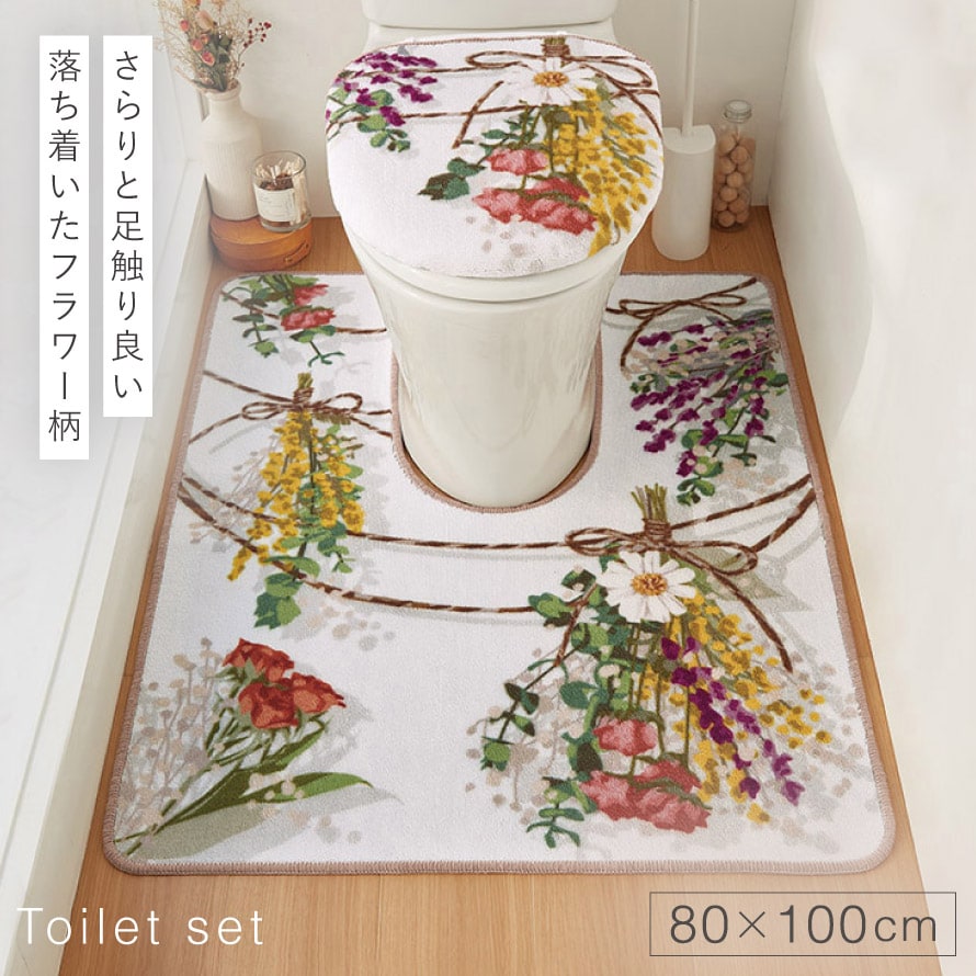 トイレマット フタカバーセット 80×100cm 花柄 ミモザ柄 耳長 ワイド トイレ 蓋 カバー 2点セット 洗える すべり止め 滑り止め トイレ インテリア おしゃれ ジャンボ耳長トイレマット・フタカバーセット ブーケスワッグ