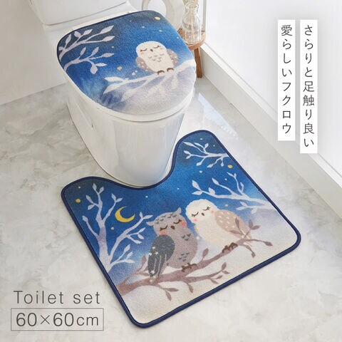 トイレマット フタカバーセット 60×60cm フクロウ ブルー トイレ 蓋 カバー 2点セット 洗える すべり止め 滑り止め トイレ インテリア おしゃれ レギュラートイレマット・フタカバーセット 夜明け