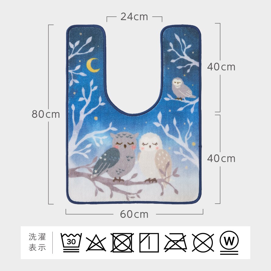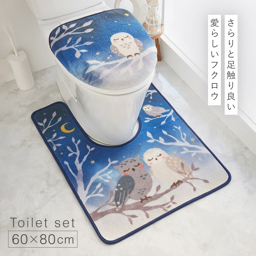トイレマット フタカバーセット 60×80cm フクロウ ブルー 耳長 トイレ 蓋 カバー 2点セット 洗える すべり止め 滑り止め トイレ インテリア おしゃれ 耳長トイレマット・フタカバーセット 夜明け