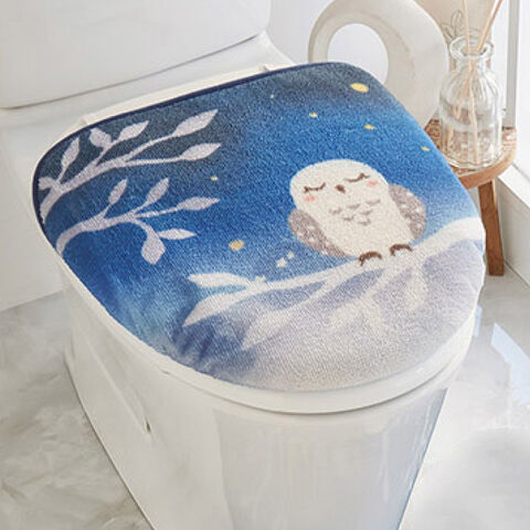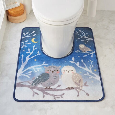 愛らしく縁起の良いフクロウモチーフ。夜明けの空をイメージした深いブルーのグラデーションは、幻想的で落ち着いた雰囲気。トイレマットと蓋カバーをコーディネイトで日常のトイレ空間を、癒しのひとときに。