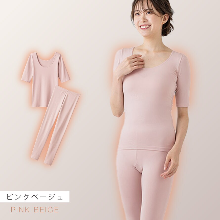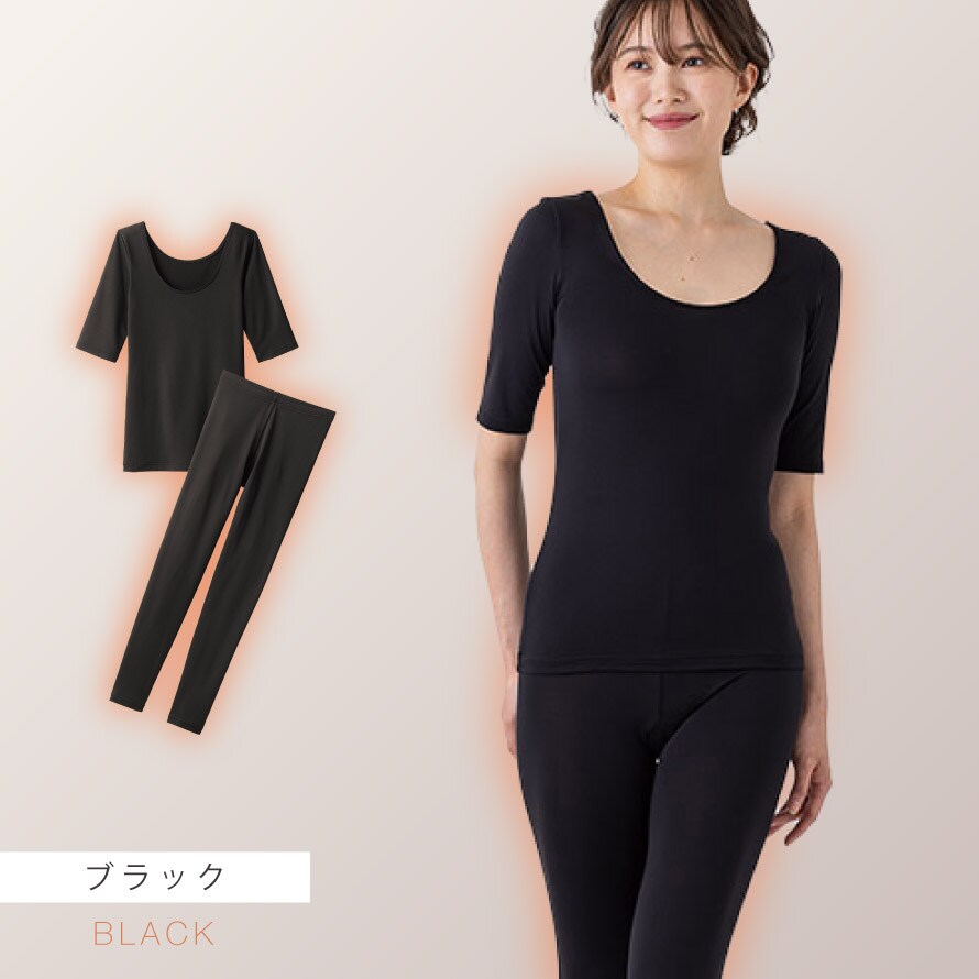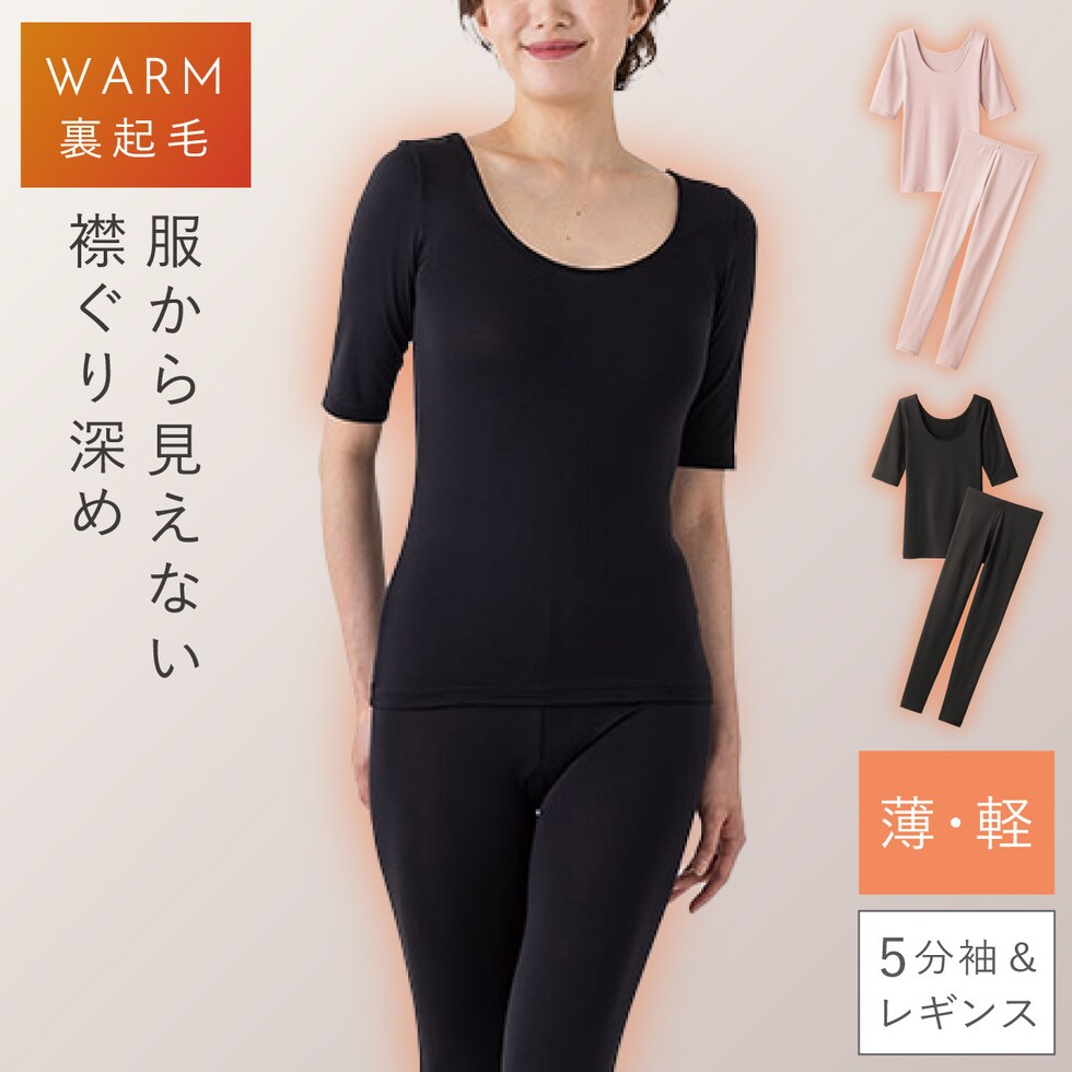 冬のおしゃれも、あたたかさも、快適さも。1枚で全部叶える「ふわぬく裏起毛インナー上下セット 5分袖」。