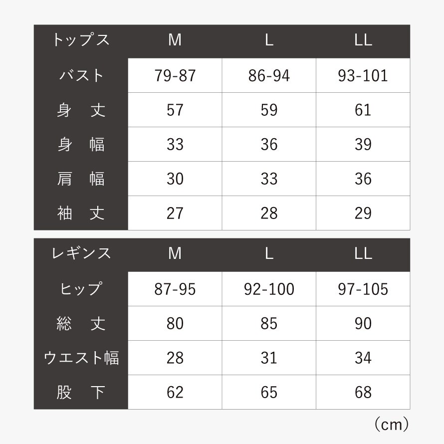| サイズ | M/バスト79-87、身丈57、身幅33、肩幅30、袖丈27、ヒップ87-95、総丈80、ウエスト幅28、股下62、L/バスト86-94、身丈59、身幅36、肩幅33、袖丈28、ヒップ92-100、総丈85、ウエスト幅31、股下65、LL/バスト93-101、身丈61、身幅39、肩幅36、袖丈29、ヒップ97-105、総丈90、ウエスト幅34、股下68cm |
