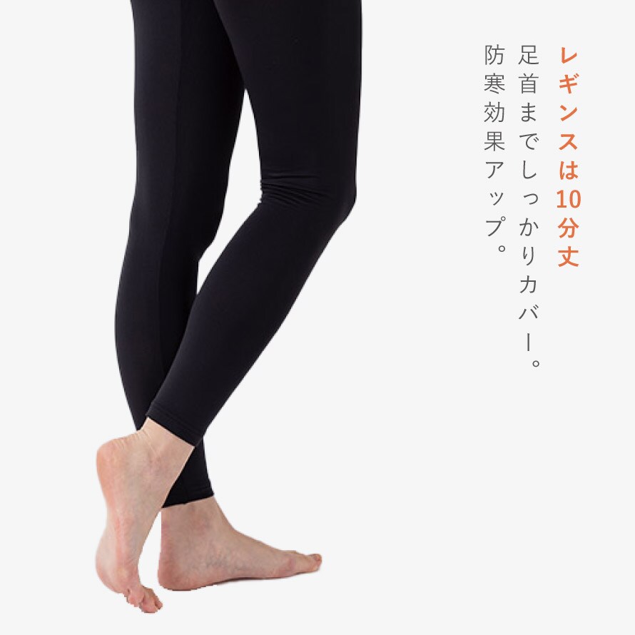 レギンスは、10分丈で足首までしっかりカバー、防寒効果アップ。