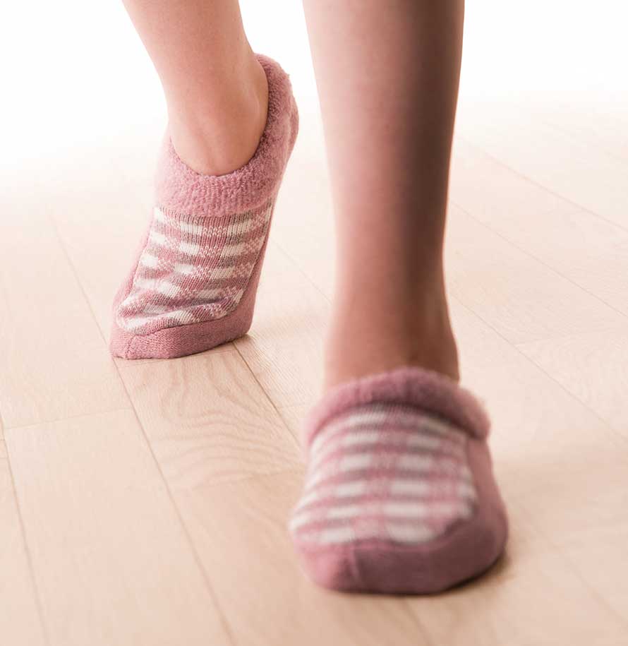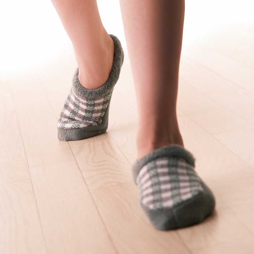 足底に滑り止め付きで、脱げにくい。足元あったか室内用のルームソックス。