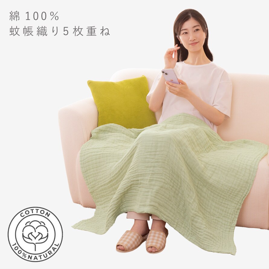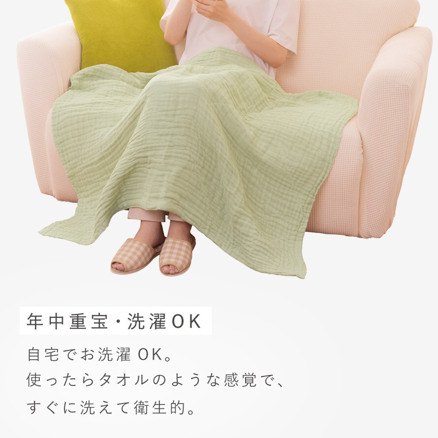 肌に直接ふれても安心の綿100%。年齢とともにデリケートになる肌にも安心して使えます。?夏は涼しく、秋冬は重ね使いであたたかく、一年中使える万能ブランケット。ナチュラル素材の心地よさを実感できます。