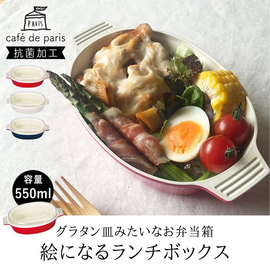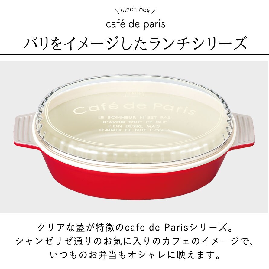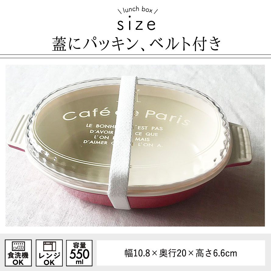 弁当箱 1段 女子 大人 抗菌加工 食洗機対応 レンジ対応 おしゃれ 北欧 かわいい 可愛い バンド付き 食中毒予防 ナチュラル お弁当箱 お弁当 弁当 クリア アイボリー レッド 赤 ネイビー 紺 PARIS オーバルディッシュランチ Cafe de Paris 抗菌 BPAフリー