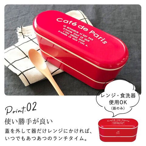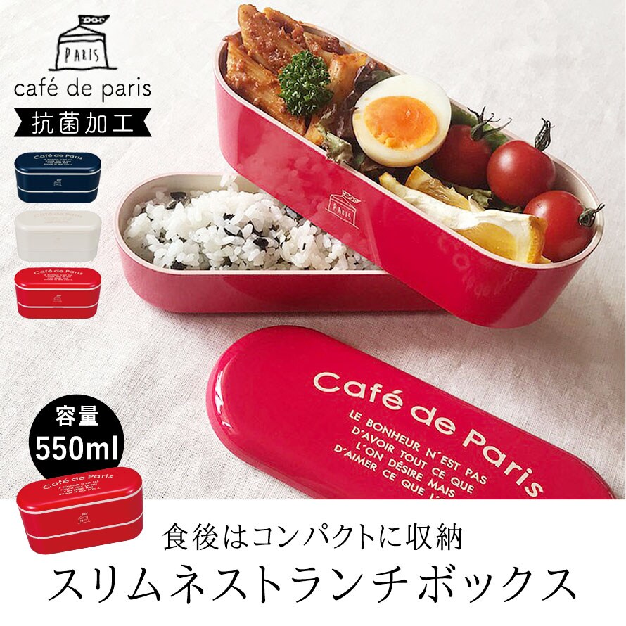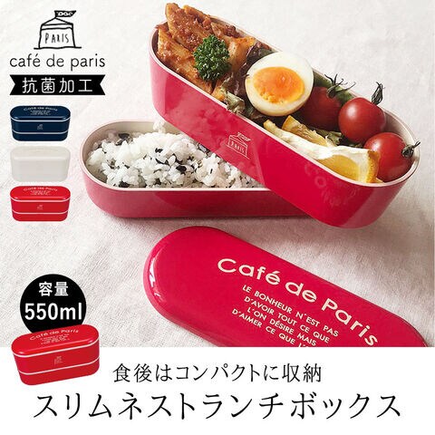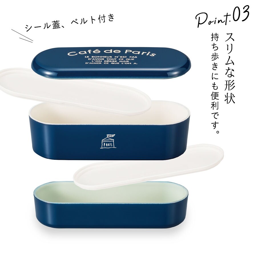 弁当箱 2段 女子 大人 スリム 抗菌加工 食洗機対応 レンジ対応 おしゃれ 北欧 入れ子 コンパクト かわいい 可愛い バンド付き 食中毒予防 ナチュラル お弁当箱 お弁当 弁当 クリア アイボリー レッド 赤 ネイビー 紺 PARIS スリムネストランチ Cafe de Paris 抗菌 ...