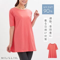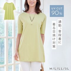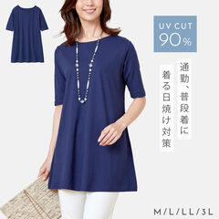 衿を立てて気になる首元ををガードできる、着る日焼け対策『7分袖のポロシャツチュニック』です。