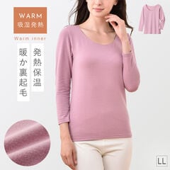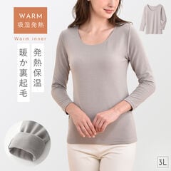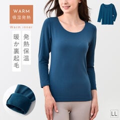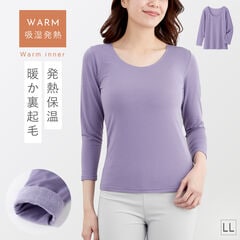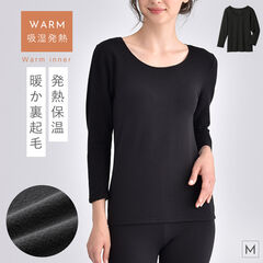 吸湿・発熱保温、発熱繊維「ヒートウォーム」を使用。汗などの水分を吸収して発熱。発生した熱を逃しにくく保温効果をもたらします。