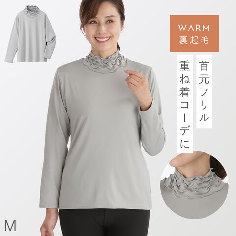 波打つメロウフリルが、顔まわりをふんわり華やかに。大人女性のための上品なハイネックトップス。