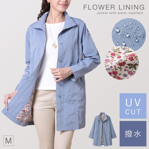 ジャケット レディース 春 シニア ミセス アウター 上着 撥水 3L 大きいサイズ ゆったり はっ水!裏プリントワッシャージャケット