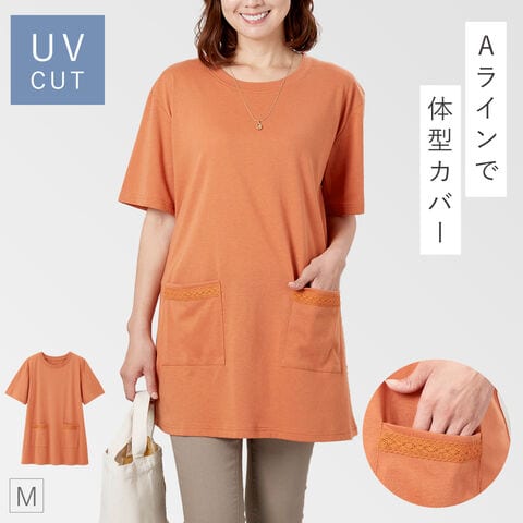 チュニック 大人可愛い レディース 5分袖 uvカット 春夏 M L LL 3L ゆったり 大きいサイズ ポケット付き トップス 体型カバー 大人 春 aライン UVカットポケ付きチュニック 紫外線カット 50代 60代 70代 ミセスファッション 婦人服 母 きれいめ シンプル