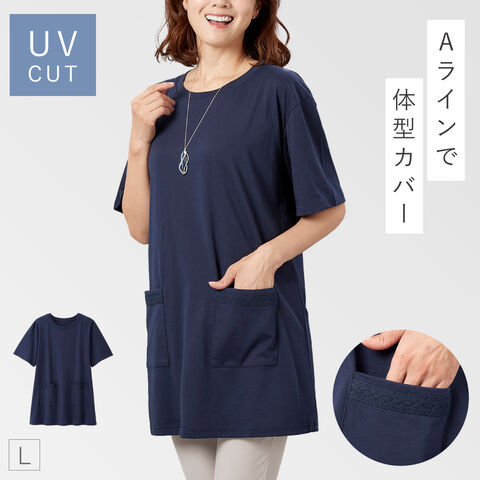 チュニック 大人可愛い レディース 5分袖 uvカット 春夏 M L LL 3L ゆったり 大きいサイズ ポケット付き トップス 体型カバー 大人 春 aライン UVカットポケ付きチュニック 紫外線カット 50代 60代 70代 ミセスファッション 婦人服 母 きれいめ シンプル