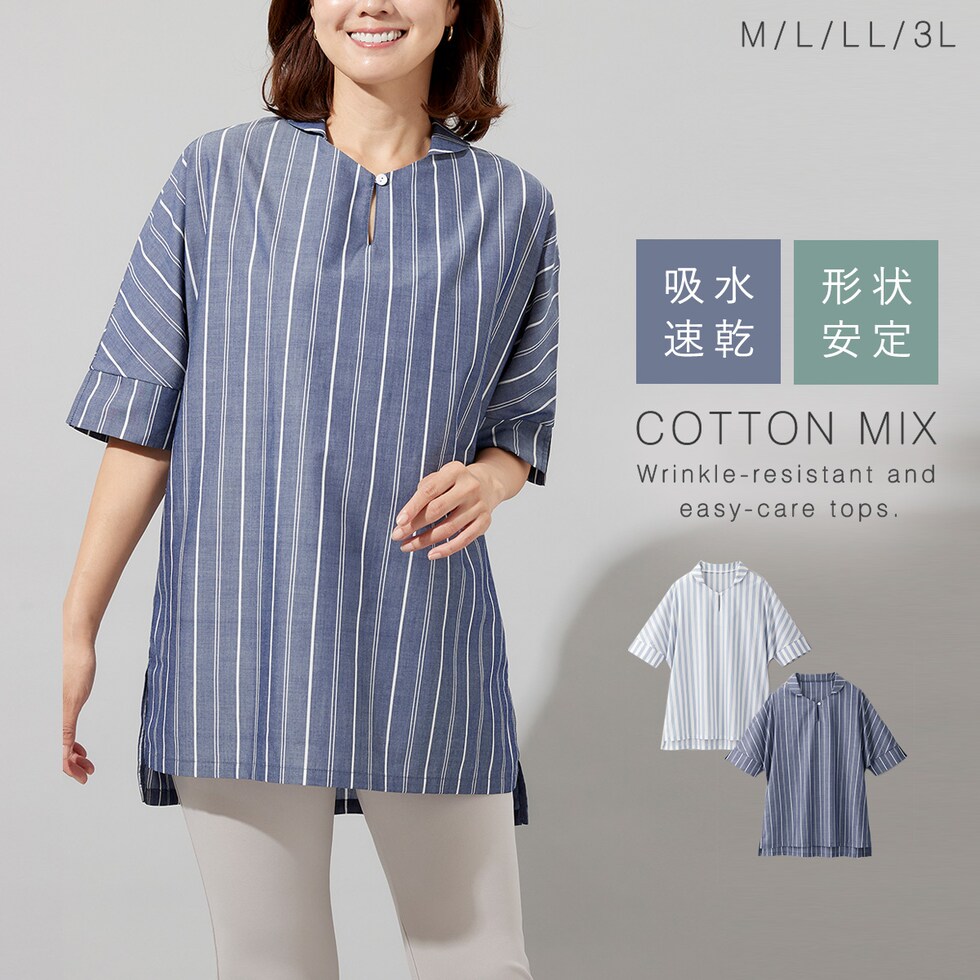 ブラウス 大きいサイズ レディース ドルマン ドルマンスリーブ チュニック 春夏 Aライン M L LL 3L ゆったり ストライプ 大人可愛い ミセス シワになりにくい 綿混アイロンいらずの涼ゆるブラウス 吸水速乾 6分袖 体型カバー 50代 60代 70代 ミセスファッション 婦人服 母 ...
