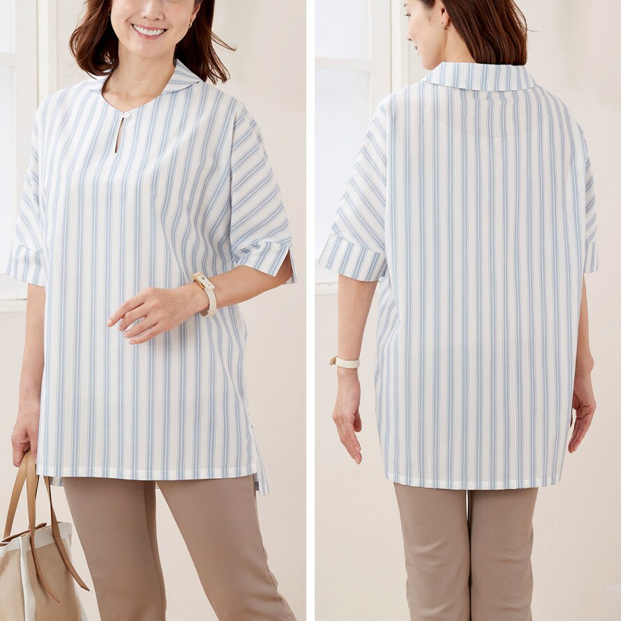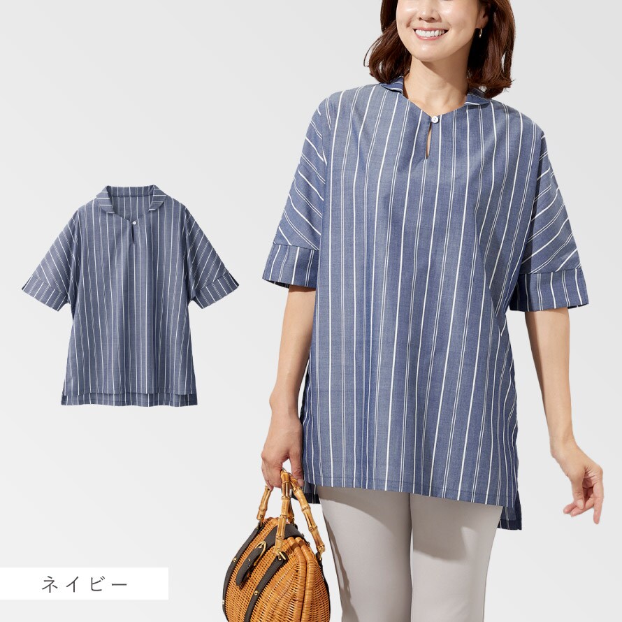 ブラウス 大きいサイズ レディース ドルマン ドルマンスリーブ チュニック 春夏 Aライン M L LL 3L ゆったり ストライプ 大人可愛い ミセス シワになりにくい 綿混アイロンいらずの涼ゆるブラウス 吸水速乾 6分袖 体型カバー 50代 60代 70代 ミセスファッション 婦人服 母 ...のレビュー