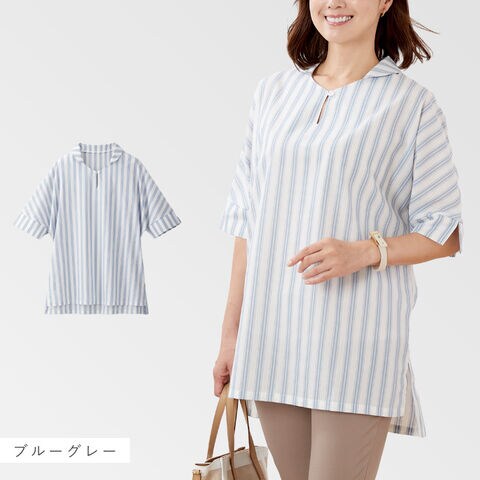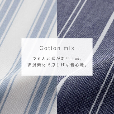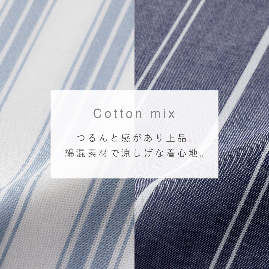 爽やかなストライプ柄。ブルーグレー・ネイビーの2色から、サイズはM、L、LL、3Lの4サイズよりお選びいただけます。