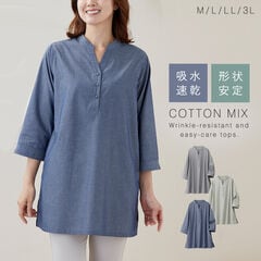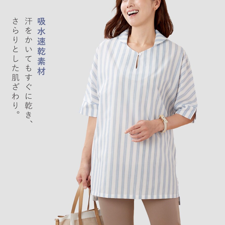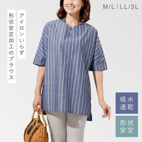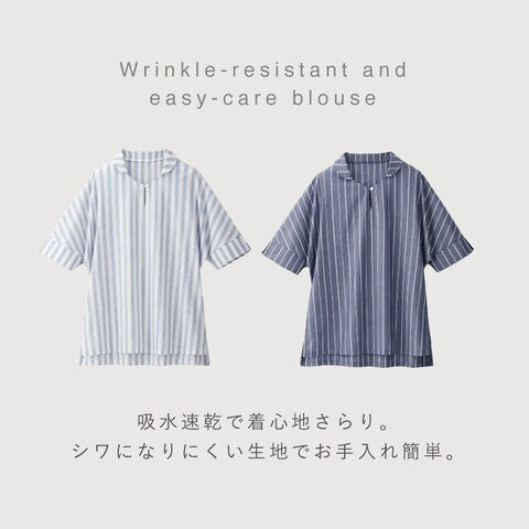 吸水速乾で着心地さらり。シワになりにくい生地でお手入れ簡単のブラウス。
