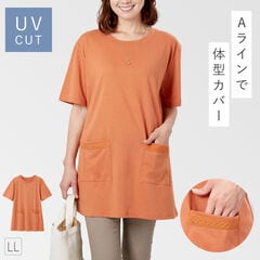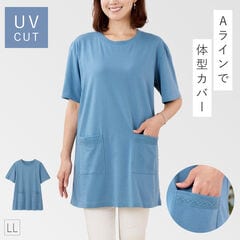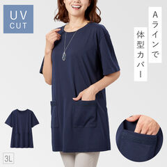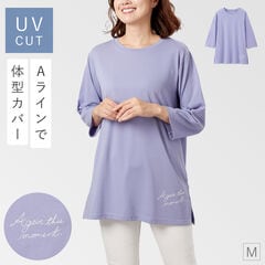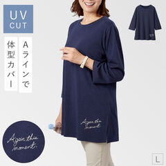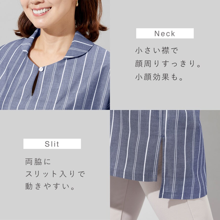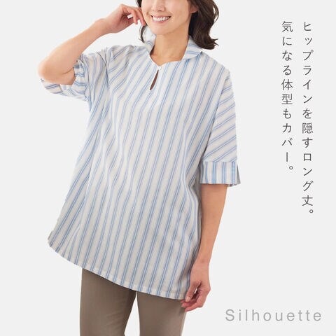 ヒップラインもカバーするロング丈。ややAラインで気になる体型をカバーできるところも嬉しい。段差スリットで脇ラインもすっきり見え。