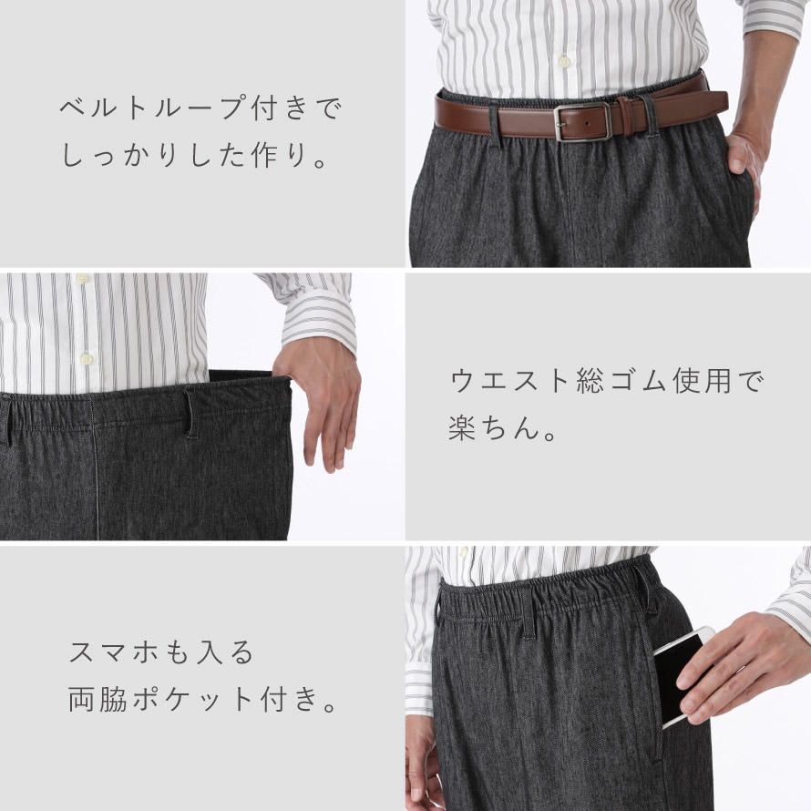 ズボン メンズ 冷感 夏 ストレッチ ウエストゴム パンツ メンズニットデニム調総ゴムパンツ M L LL 3L 大きいサイズ ゆったり 男性 紳士 ファッション