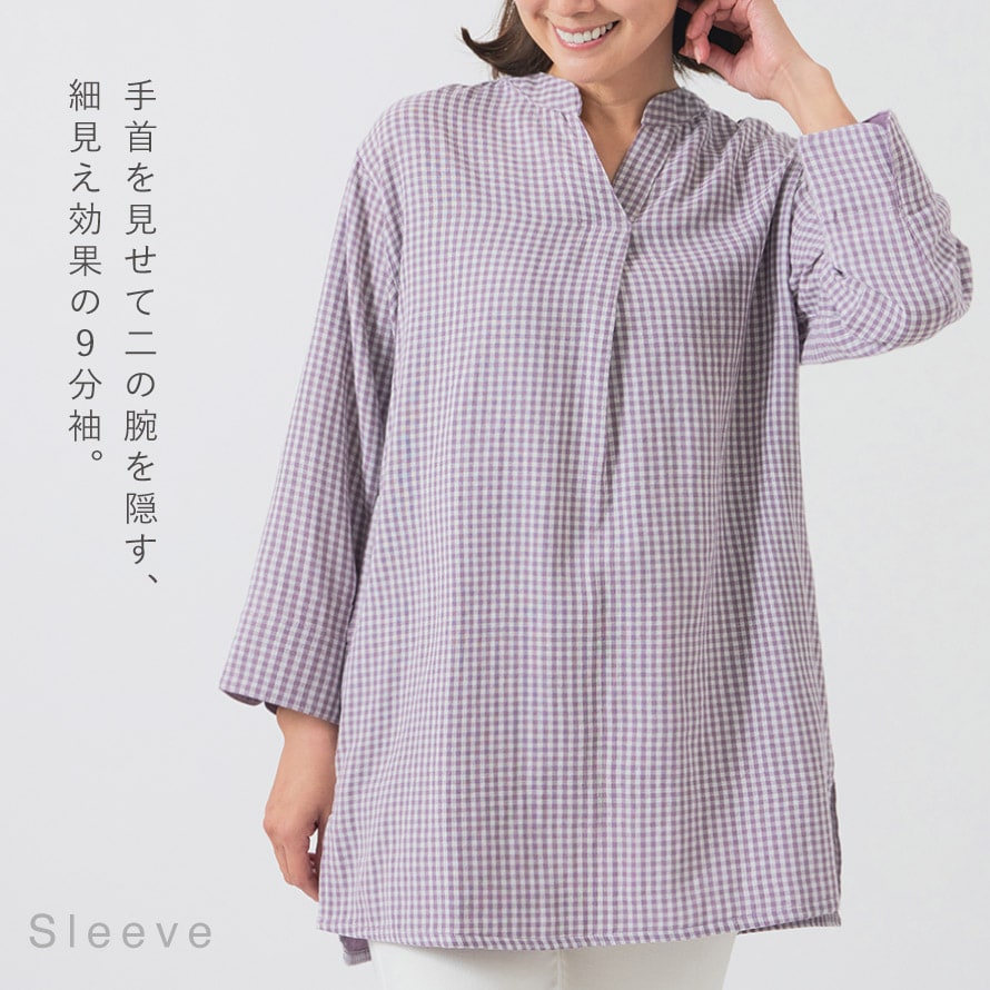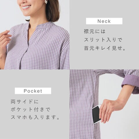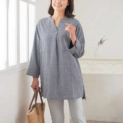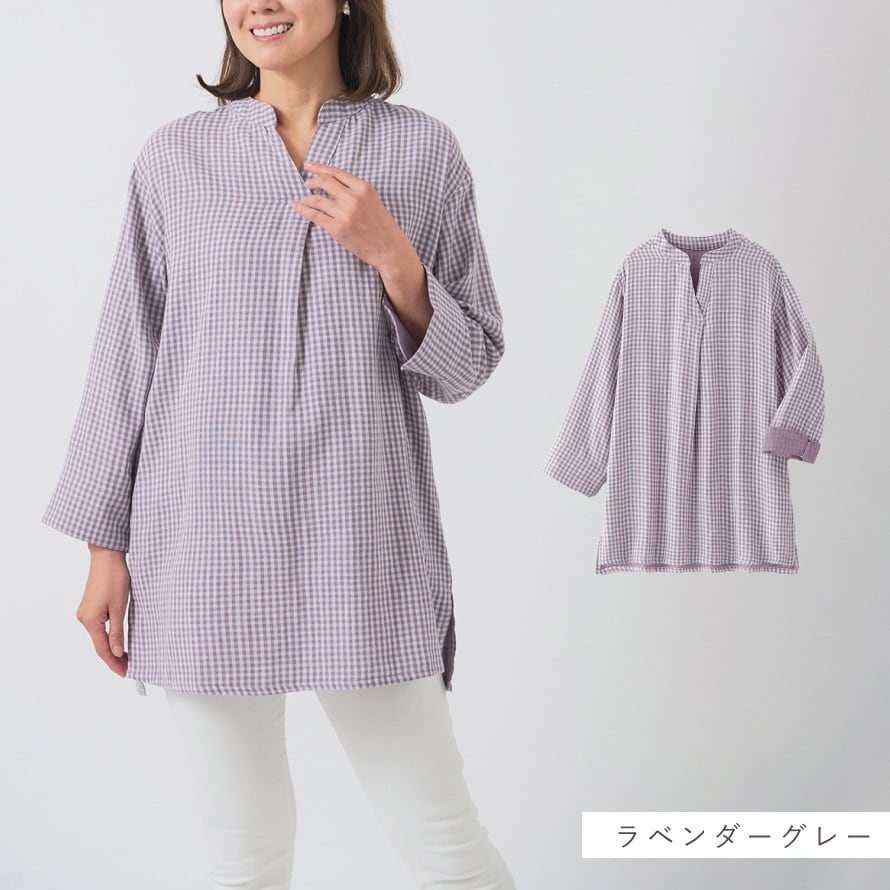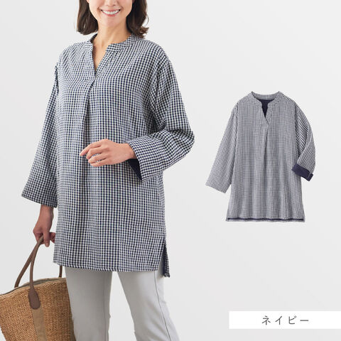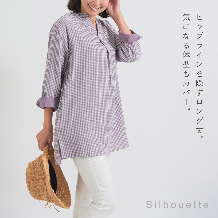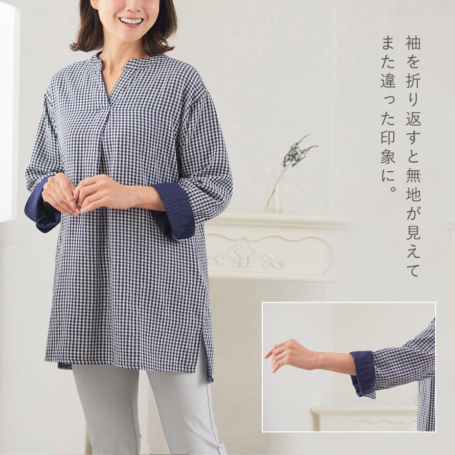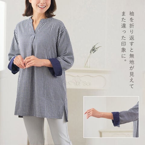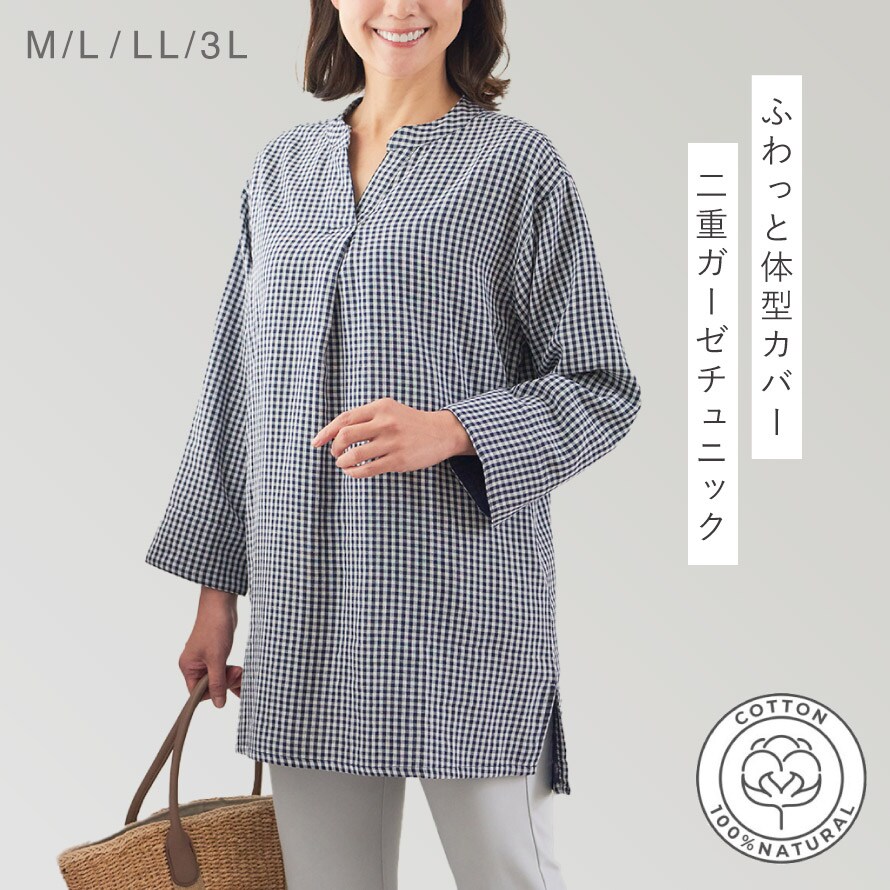 ダブルガーゼ 生地 二重 綿100% チュニック 長袖 M L LL 大きいサイズ 3L ゆったり ポケット付き 柔らかい やわらかい 40代 50代 60代 70代 ロング丈 大人可愛い 春夏 Wガーゼ コットン レディース チェック 軽やかダブルガーゼチュニック 部屋着 おしりカバー 体型...