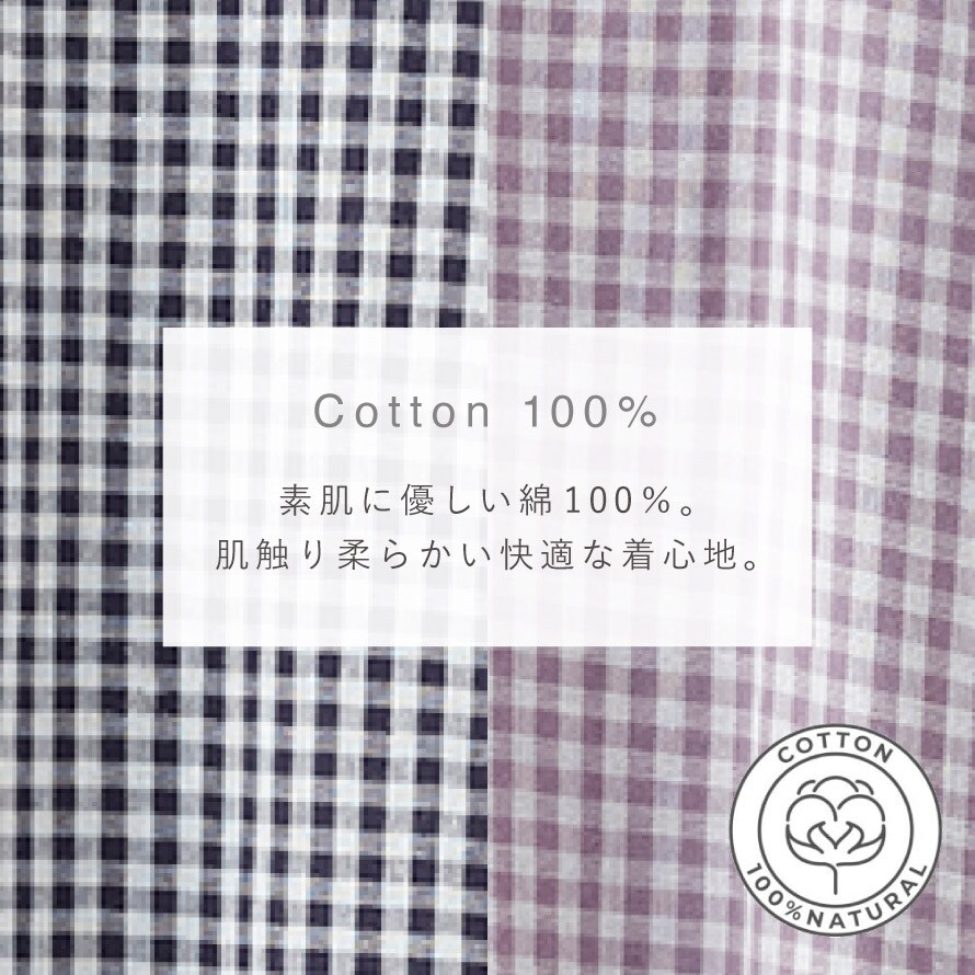 定番ギンガムチェック柄のシンプルなデザイン。デニムとも高相性の使いやすいアイテムです。お出かけはもちろん、お家でのリラックス時間にも。