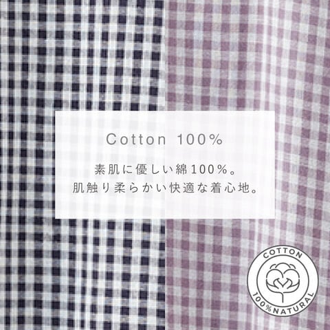 軽くて通気性の良い綿100%の二重ガーゼ素材。吸水性・吸湿性に優れているので汗をしっかり吸水します。柔らかく、優しい肌触りの快適な着心地。