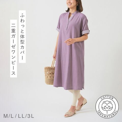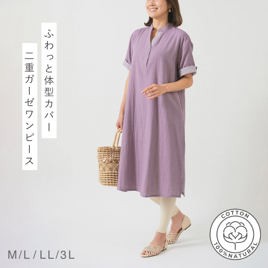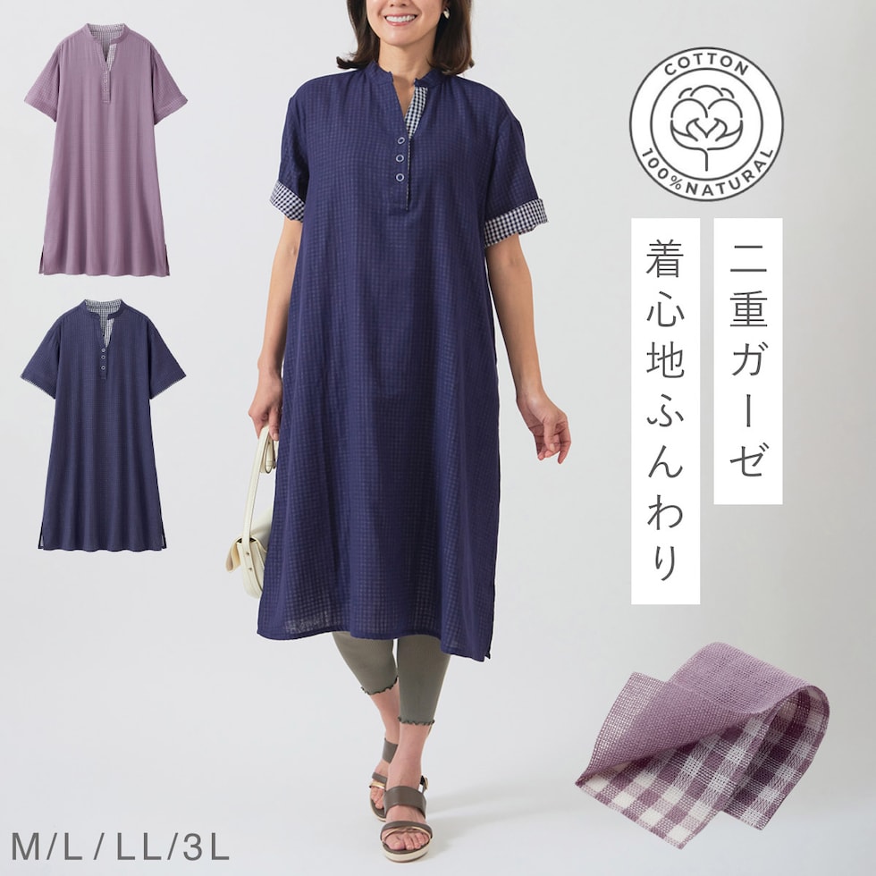 ダブルガーゼ 生地 二重 綿100% コットン100% チュニックワンピース M L LL 大きいサイズ 3L ゆったり ポケット付き 柔らかい やわらかい 40代 50代 60代 70代 大人可愛い 春夏 Wガーゼ レディース 軽やかダブルガーゼ 部屋着 おしりカバー 体型カバー プルオーバ...