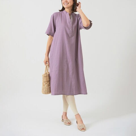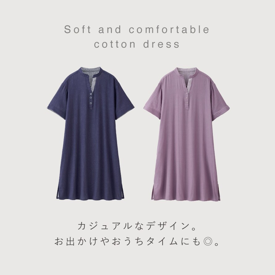 綿100%の優しい肌触り。ふわっと体型カバーできるワンピース。