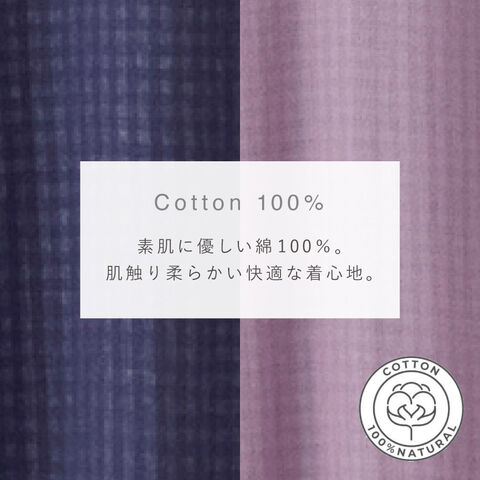 軽くて通気性の良い綿100%の二重ガーゼ素材。吸水性・吸湿性に優れているので汗をしっかり吸水します。柔らかく、優しい肌触りの快適な着心地。