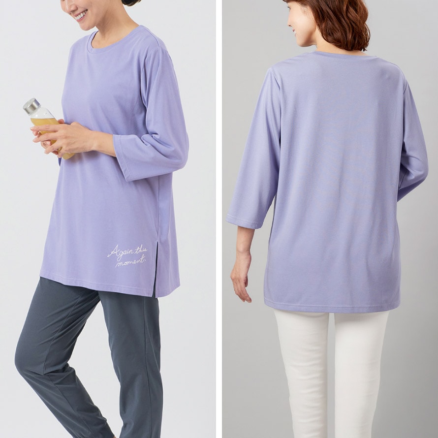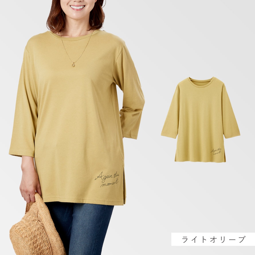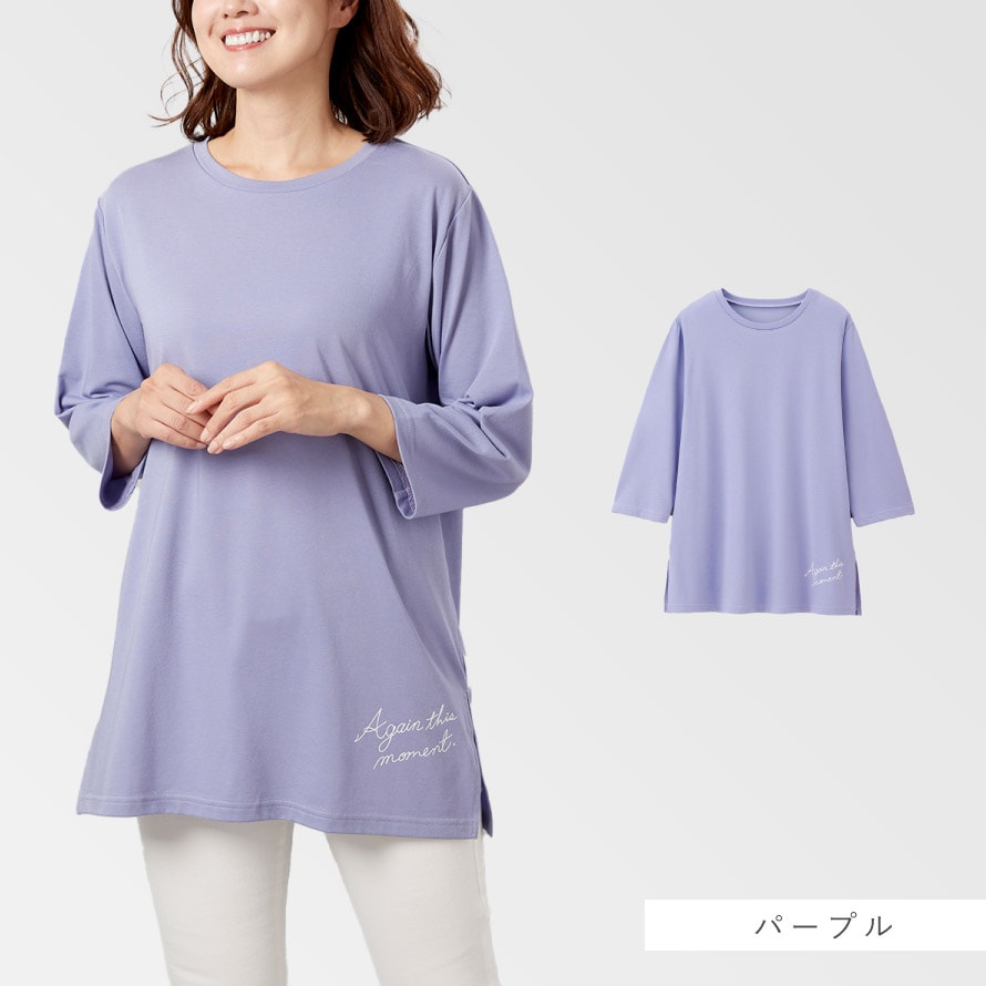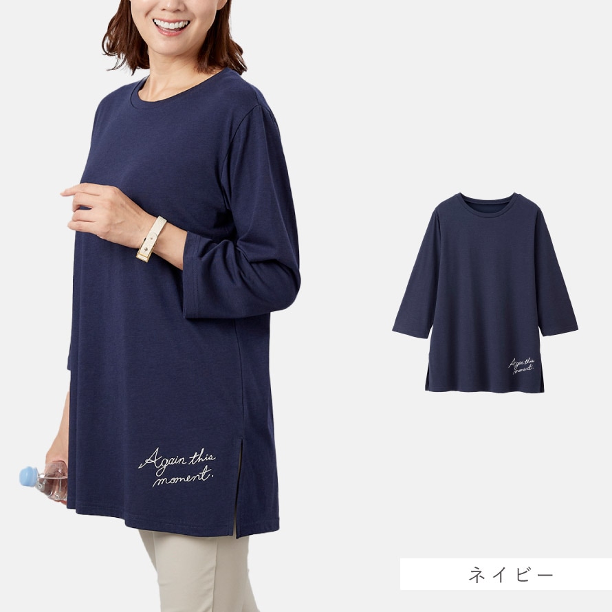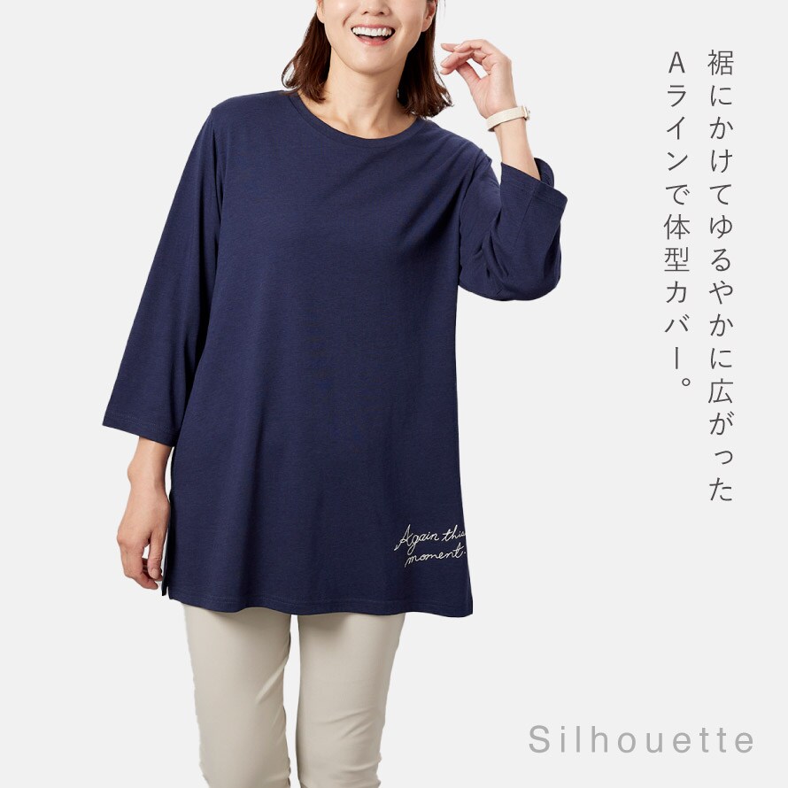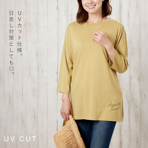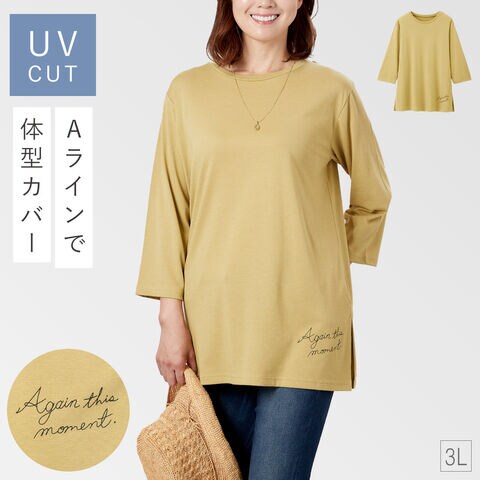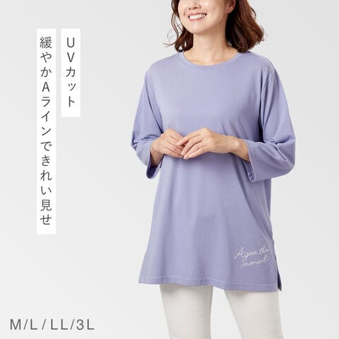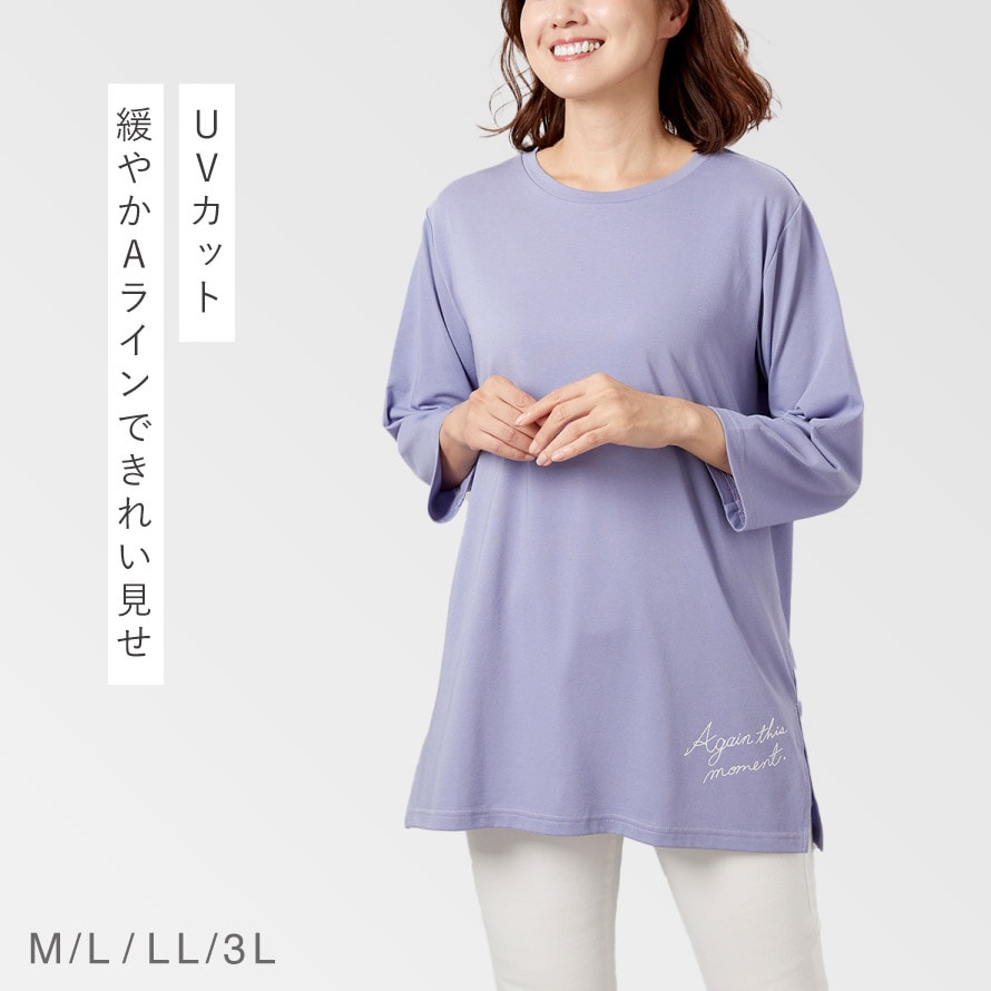チュニック 大人可愛い レディース 七分袖 uvカット 7分袖 大人 春 M L LL 3L ゆったり 大きいサイズ aライン 体型カバー UVカット肌さらロゴチュニック スリット付き 紫外線カット 50代 60代 70代 ミセスファッション 婦人服 母 きれいめ シンプル