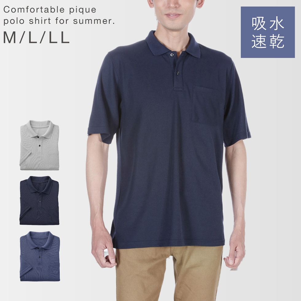 ポロシャツ メンズ ポロシャツ 半袖 鹿の子 吸汗速乾 シャツ 仕事着 薄手 涼しい 胸ポケット 吸汗速乾半袖ポロ(メンズ) M L LL 3L 大きいサイズ ゆったり 男性 紳士 ファッション