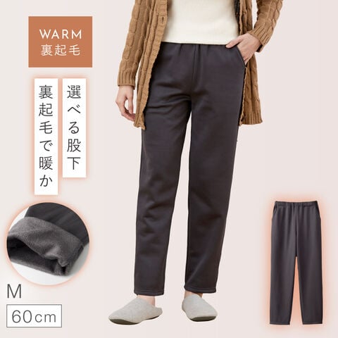 ゆったりヒップ&すっきりテーパードで、きれい見え&快適。足口は細め設計で冷気が入りにくく、足元まであたたか。のびのびストレッチで屈伸もスムーズ。