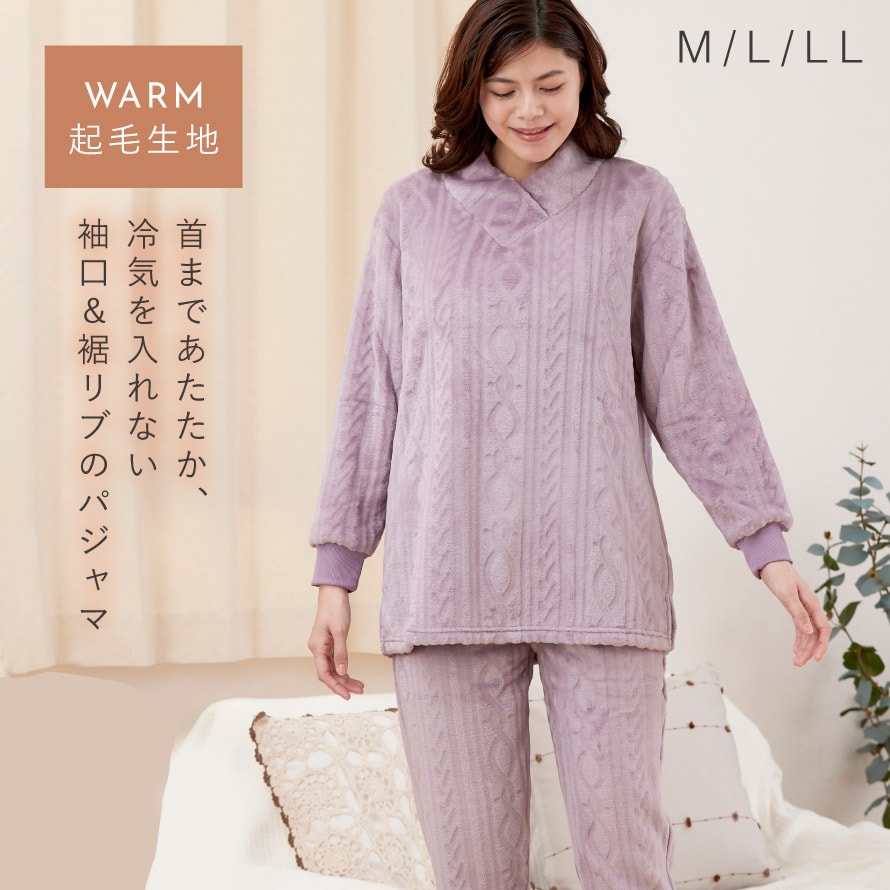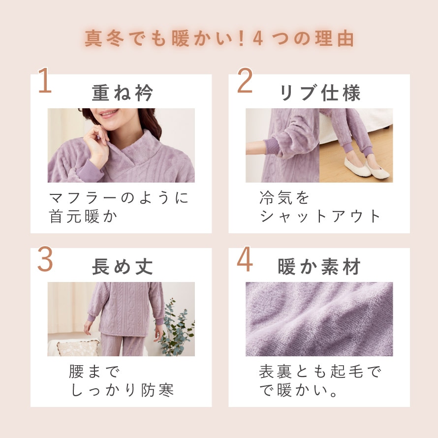 パジャマ レディース 着る毛布 冬 暖かい シニア フリース ボア もこもこ ふわふわ リブ 部屋着 まるで毛布 あったか もふ暖フリースパジャマ 60代 70代 80代