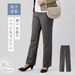 ウエスト総ゴムで一日中楽ちん。お腹まわりを締め付けず、座っても立っても快適。