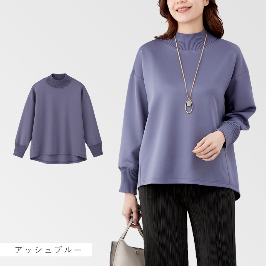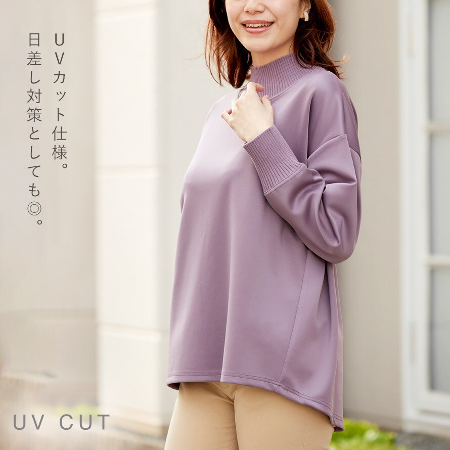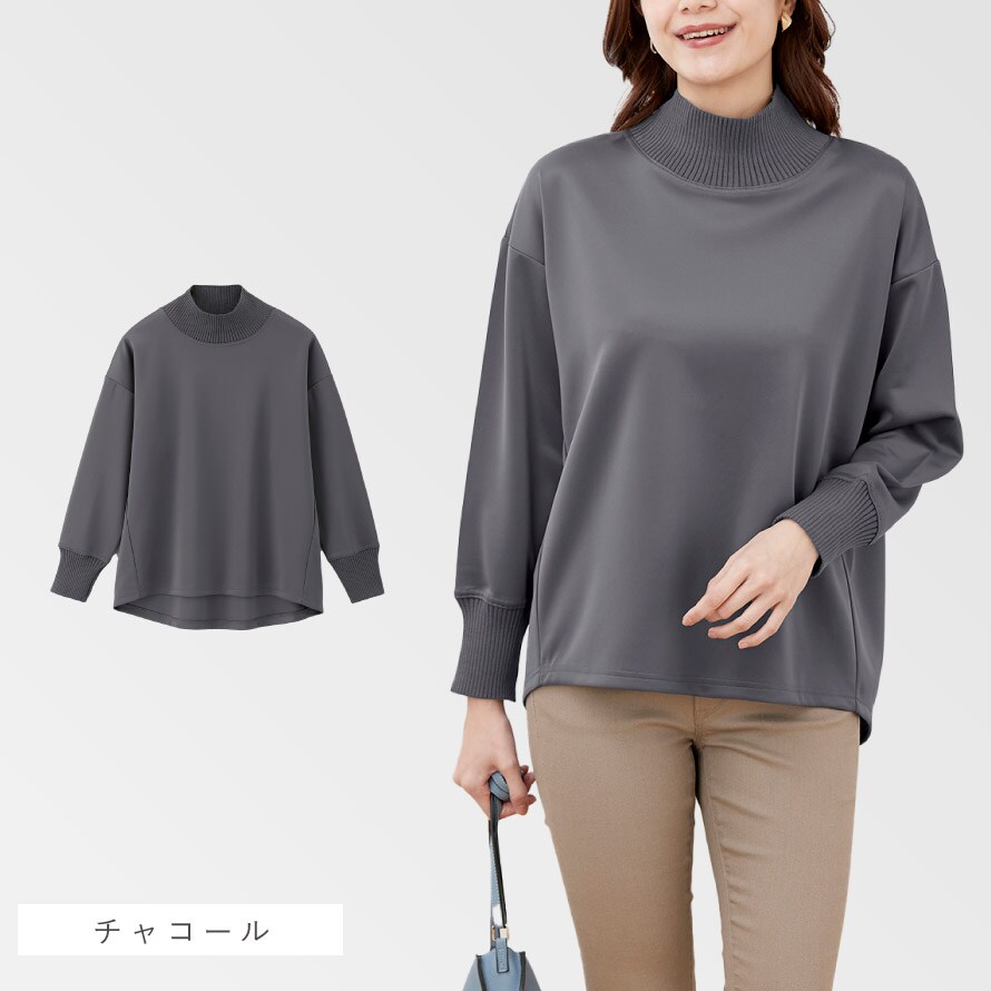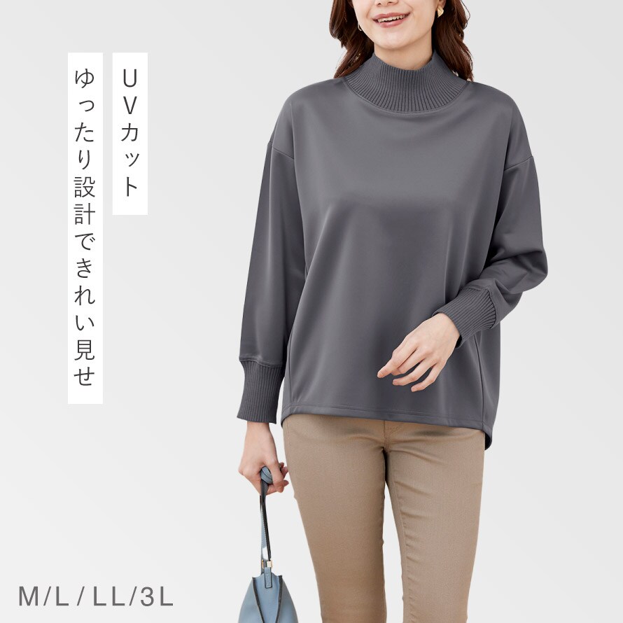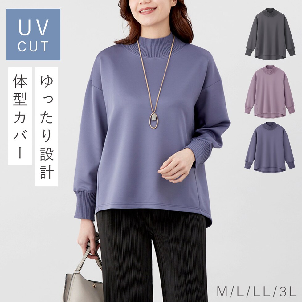 トップス レディース ゆったり 秋冬 長袖 ハイネック トップス 秋冬 M L LL 3L 体型カバー お尻が隠れる 大人 きれいめ カジュアル リブ衿 リブ袖 uvカット おしゃれ 体型カバーリブ付きプルオーバー 50代 服 60代 70代