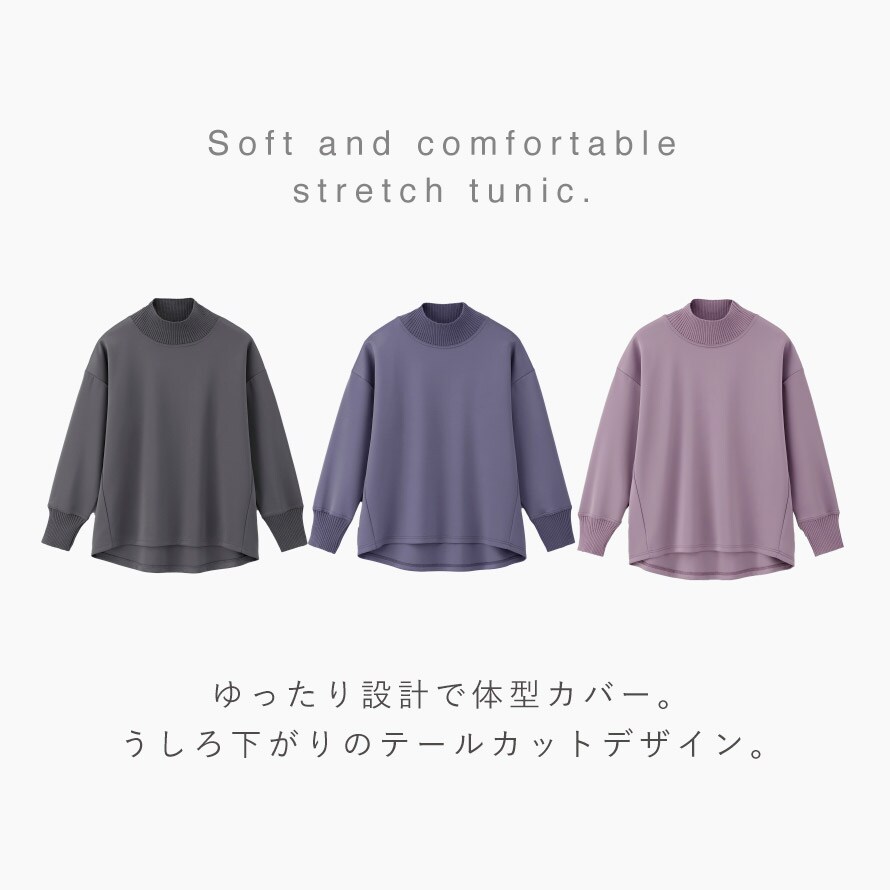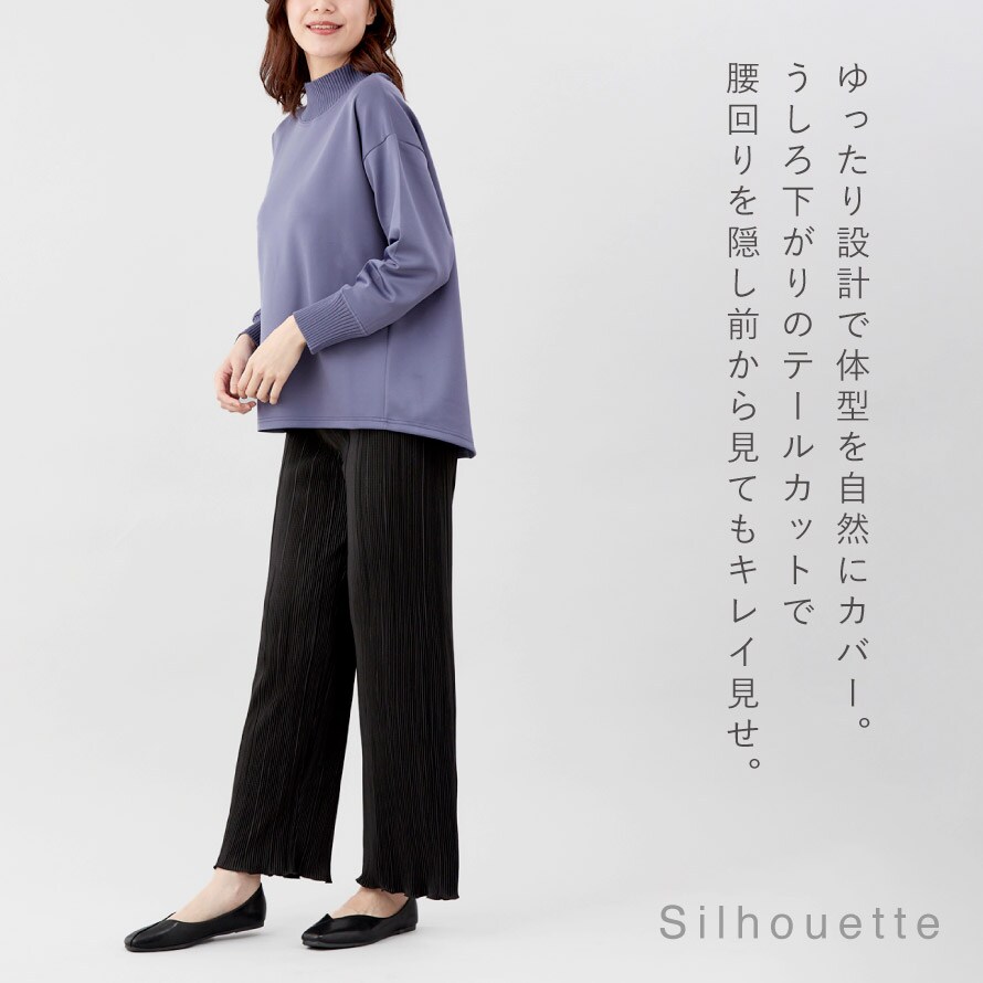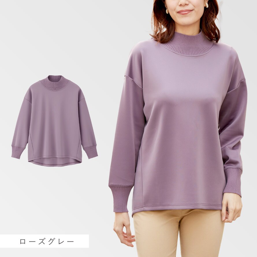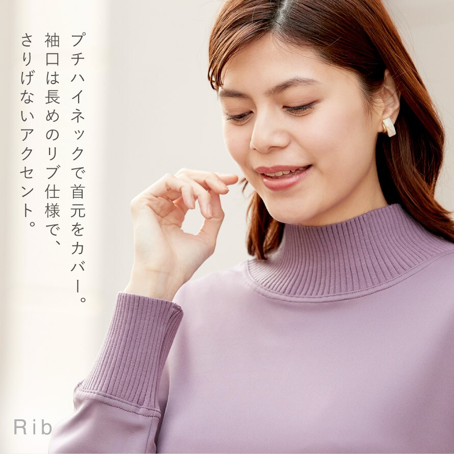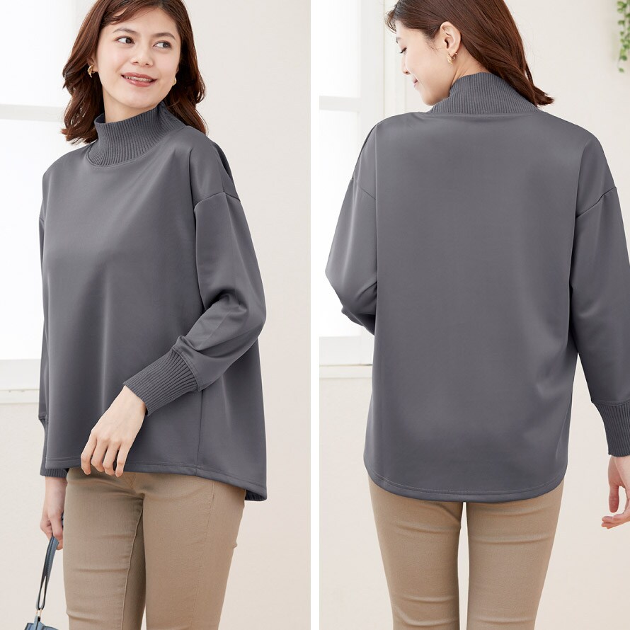 トップス レディース ゆったり 秋冬 長袖 ハイネック トップス 秋冬 M L LL 3L 体型カバー お尻が隠れる 大人 きれいめ カジュアル リブ衿 リブ袖 uvカット おしゃれ 体型カバーリブ付きプルオーバー 50代 服 60代 70代